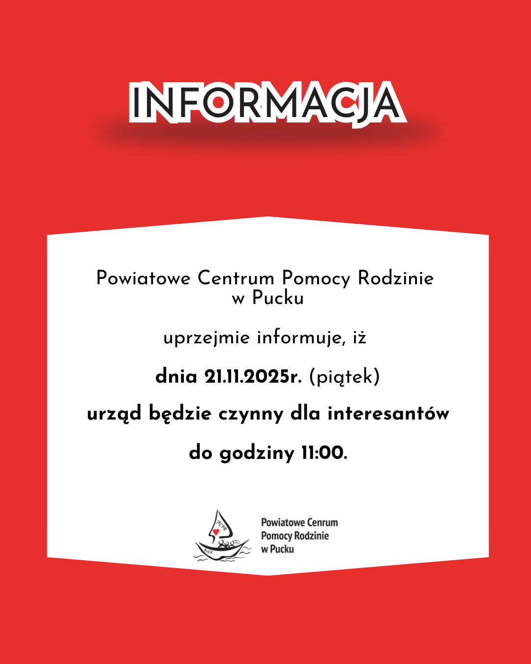 Informacja o zmianie godziny urzędowania w dniu 21.11.2025